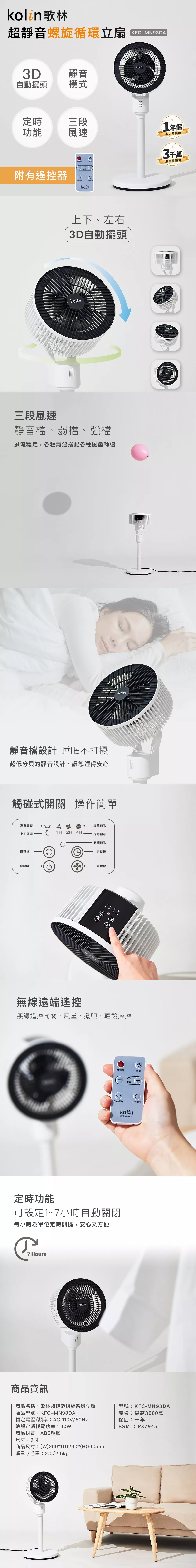 歌林 螺旋循環立扇 KFC-MN93DA