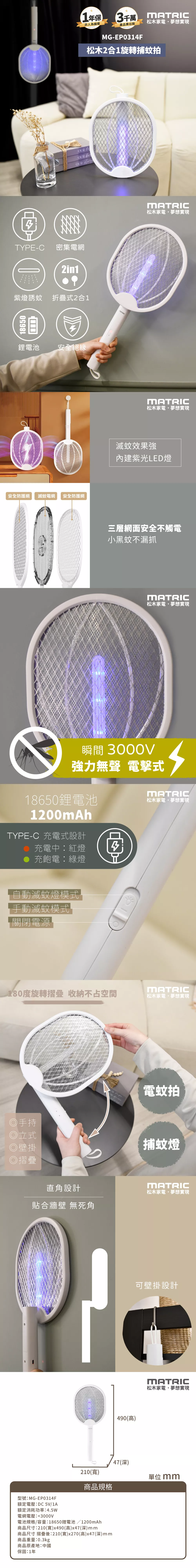 36點|松木 二合一旋轉摺疊捕蚊拍 MG-EP0314F