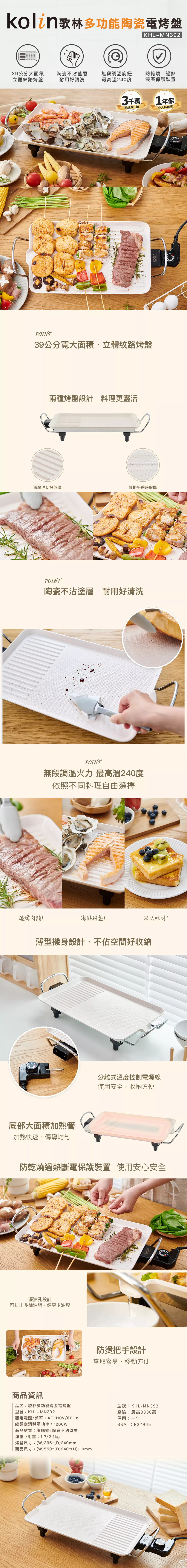 112點|歌林 陶瓷電烤盤