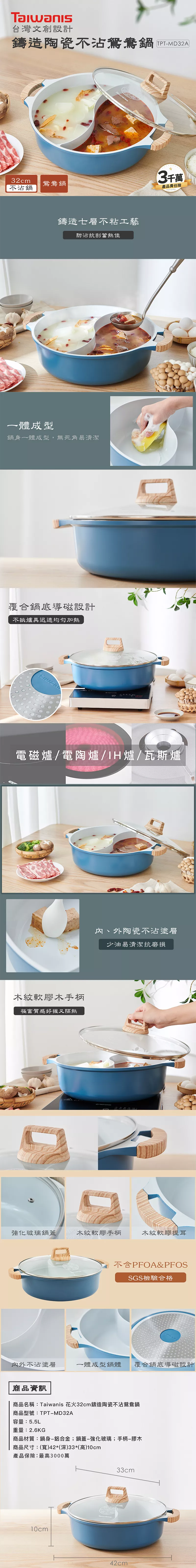 178點|Taiwanis 花火32cm鑄造陶瓷不沾鴛鴦鍋