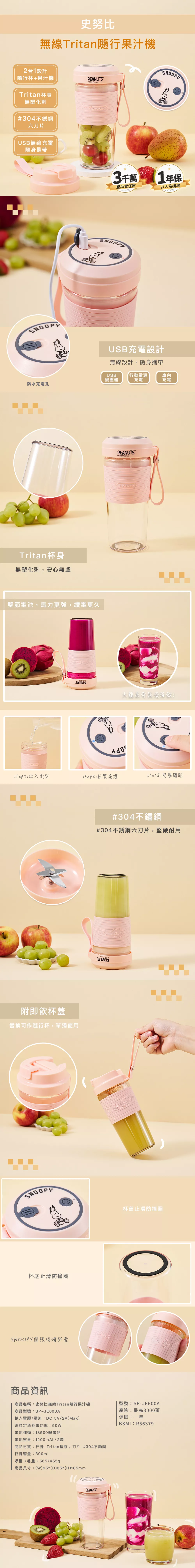 115點|史努比 無線Tritan隨行果汁機
