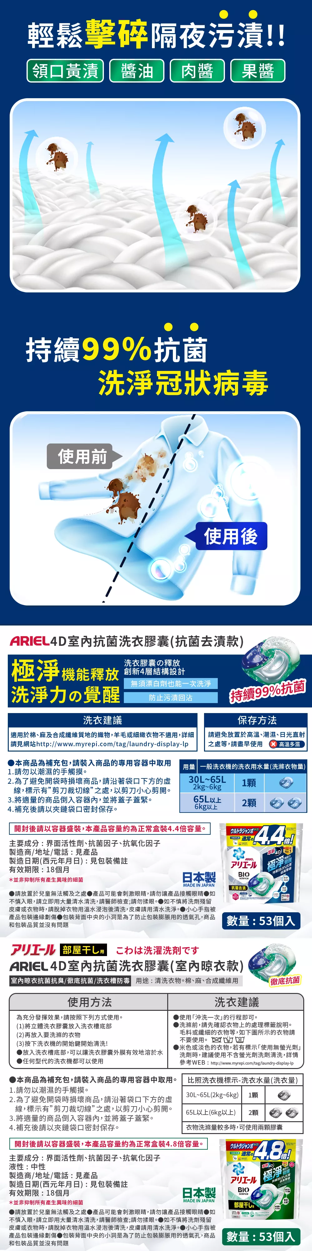 66點|Ariel 4D超濃縮抗菌洗衣膠囊